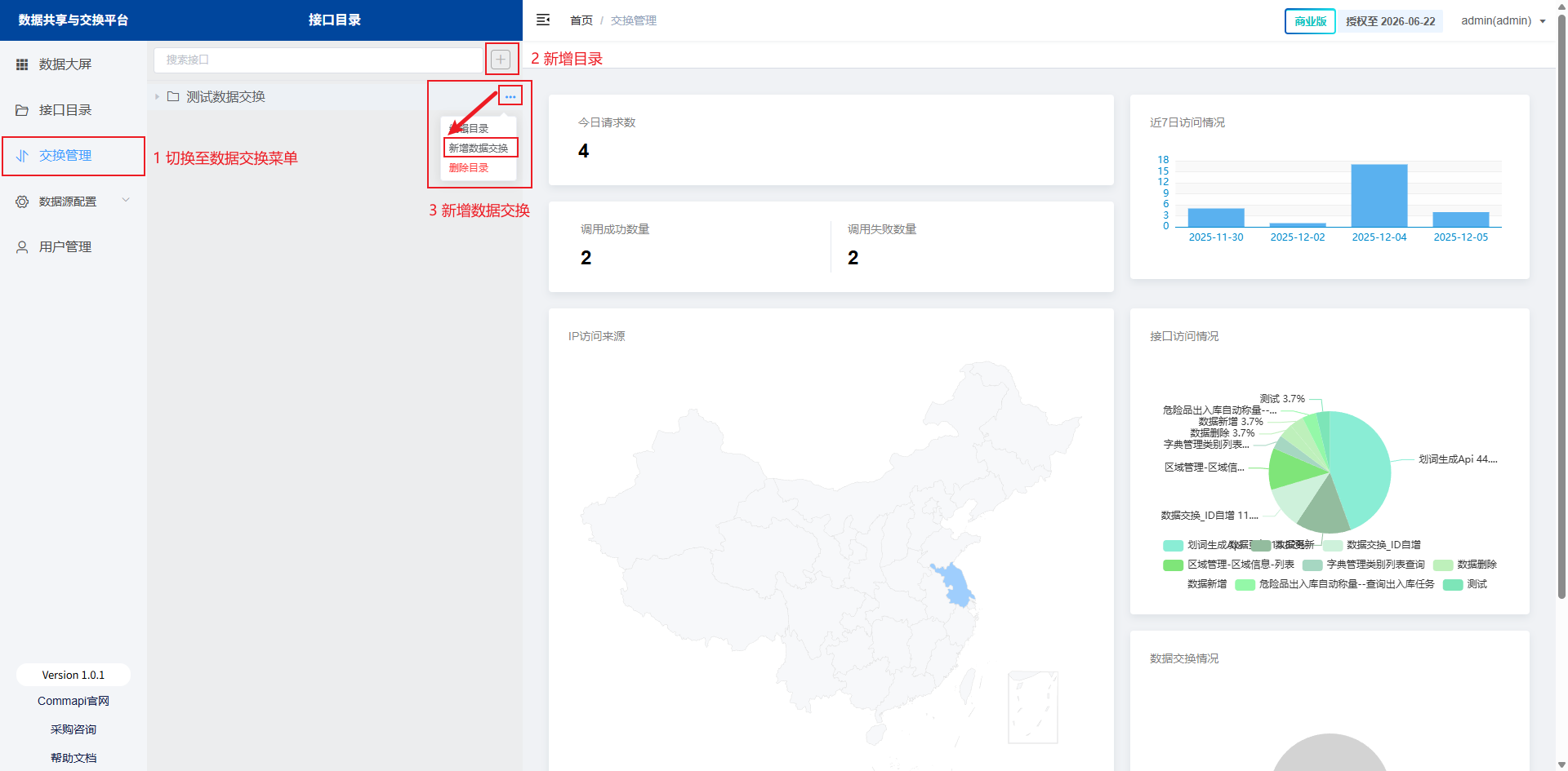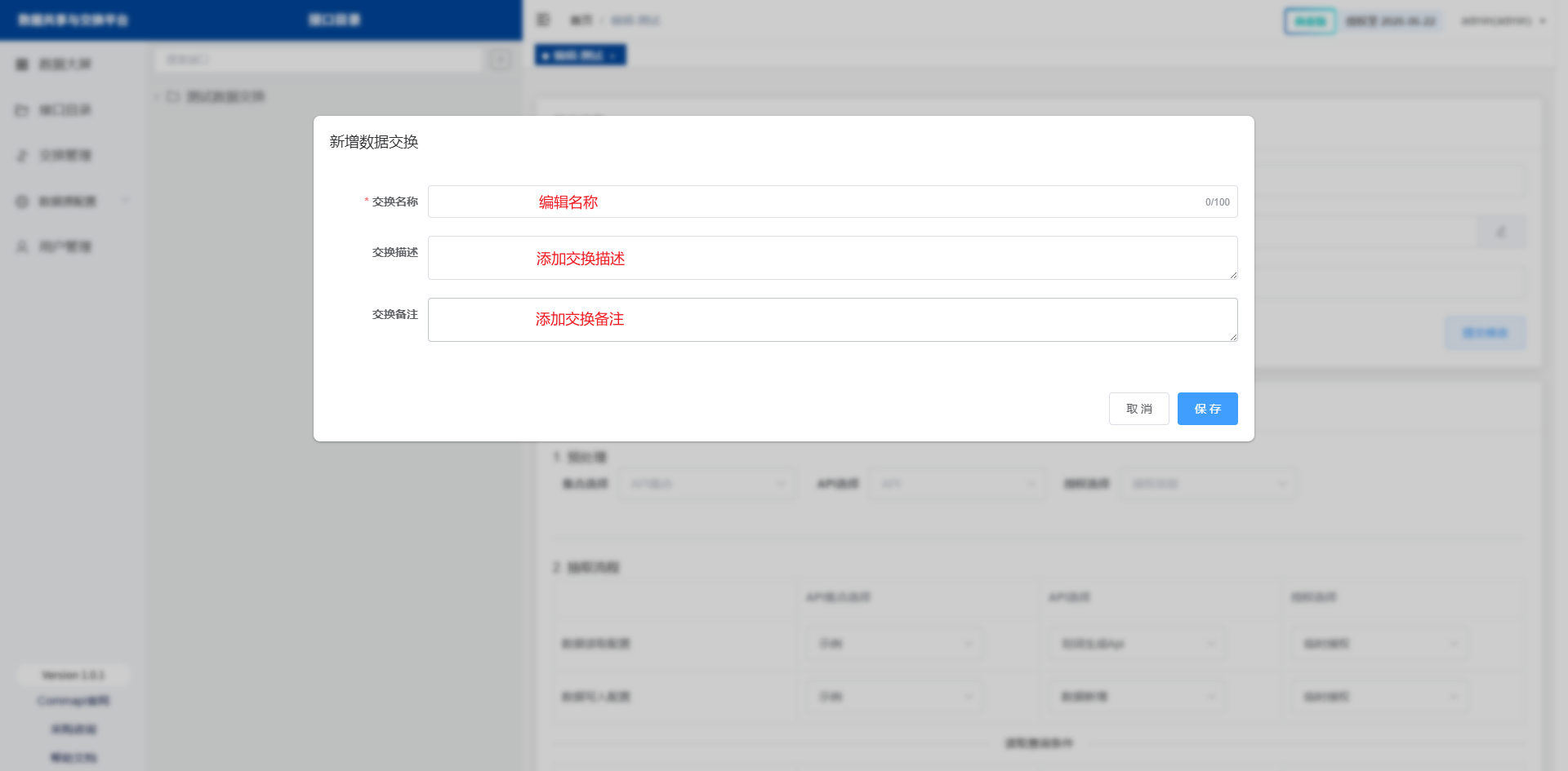 点击主页‘交换管理’-‘新增目录’-‘新增数据交换’