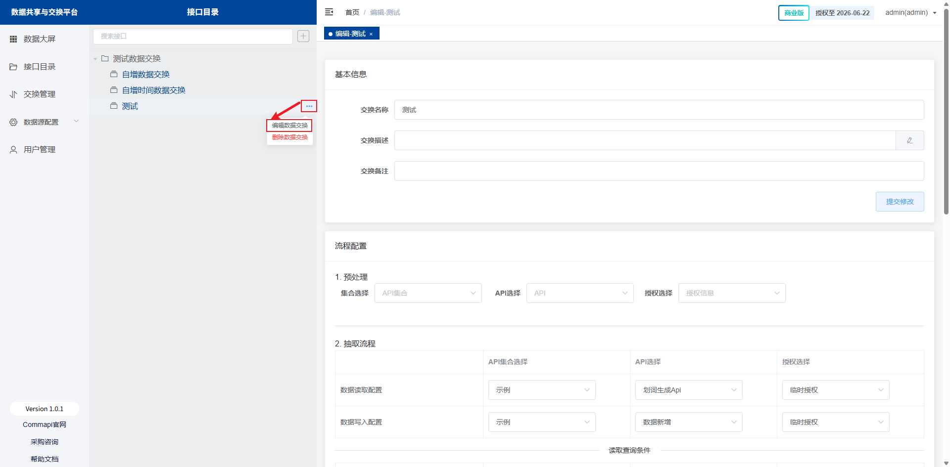 本节介绍如何使用本系统的数据交换功能,轻松搭建ETL流程