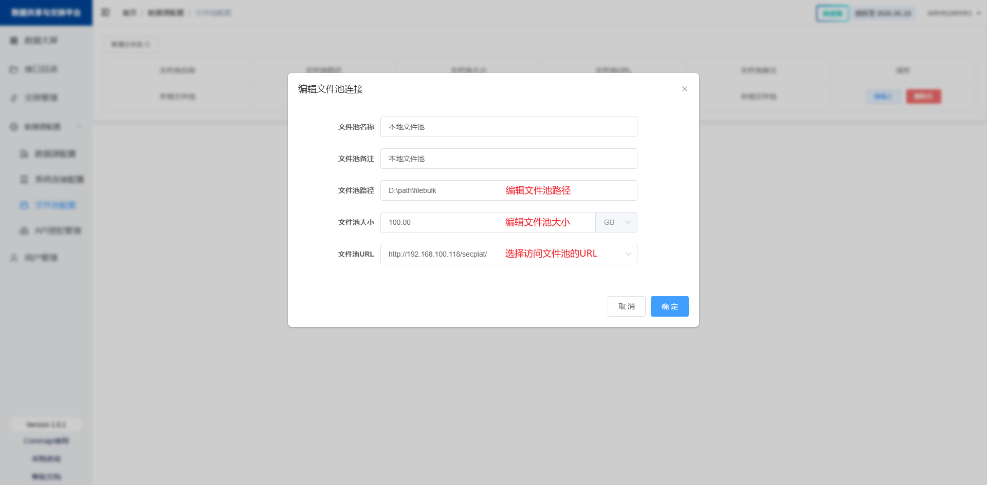 在页面编辑文件池链接的内容完成文件池链接的构建