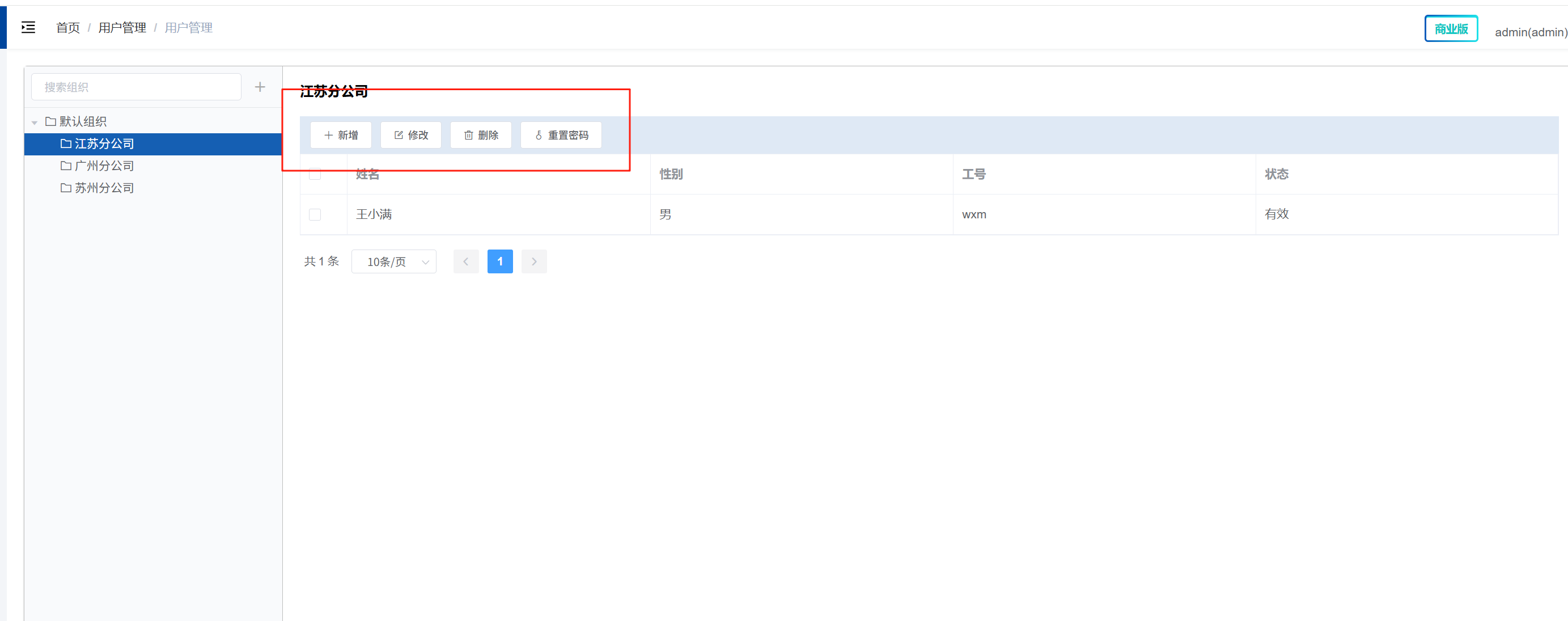 选中某个组织后,可以进行人员的添加,删除,如下所示: